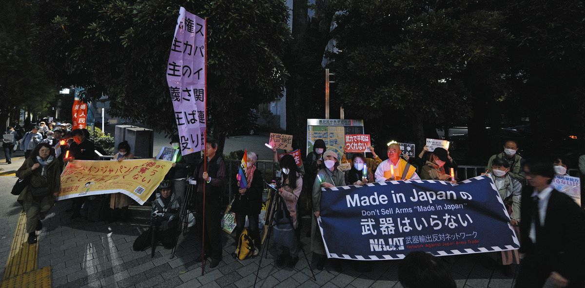 防衛装備移転三原則を改定し、輸出を非戦闘目的に限定する5類型(救難・輸送・警戒・監視・掃海)の撤廃を進める高市早苗内閣への危機感から、武器取引反対ネットワーク(NAJAT)やSTOP大軍拡アクションなど12の市民団体が呼びかけた。