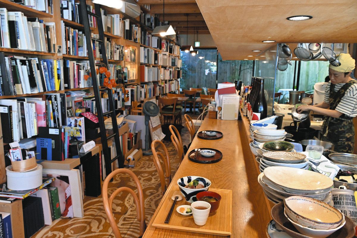 店内にはキッチンとカウンター、写真集の並ぶ本棚がある=須藤英治撮影