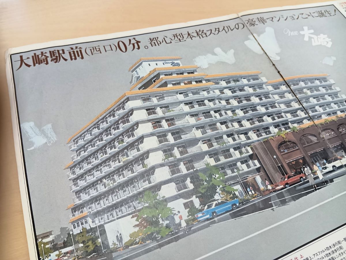 ニュー大崎が新築だった当時のチラシ。「駅前0分」とアクセスの良さを売りにしていた