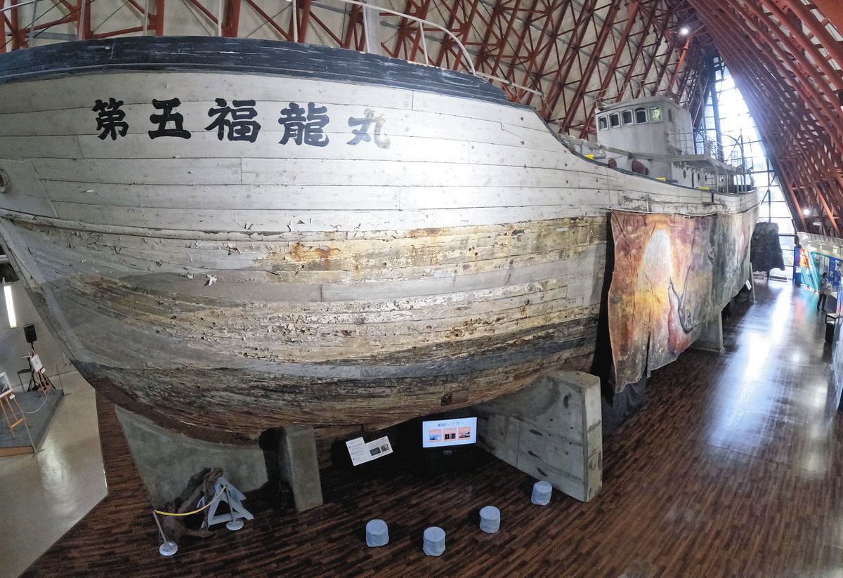 ビキニ事件米ソ冷戦と核開発競争の中、1954年3月1日、米国はマーシャル諸島ビキニ環礁で水爆「ブラボー」の実験を実施。静岡県焼津港所属の第五福竜丸は周辺海域で多量の放射性物質を浴び、乗組員23人の被ばくとマグロなどの汚染が判明。約半年後に無線長が死亡した。この事件で原水爆禁止運動が広がり、56年に被団協が結成された。放射能が減った第五福竜丸は東京水産大(現東京海洋大)の航海練習船となり、廃船後はごみ処分場「夢の島」に放置されたが、市民の保存運動から76年に都が展示した。