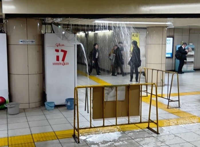 14日午後6時ごろ、千代田区の東京メトロ丸ノ内線霞ケ関駅の日比谷公園方面の改札付近で、天井から大量の漏水があった。給水管が破損した可能...