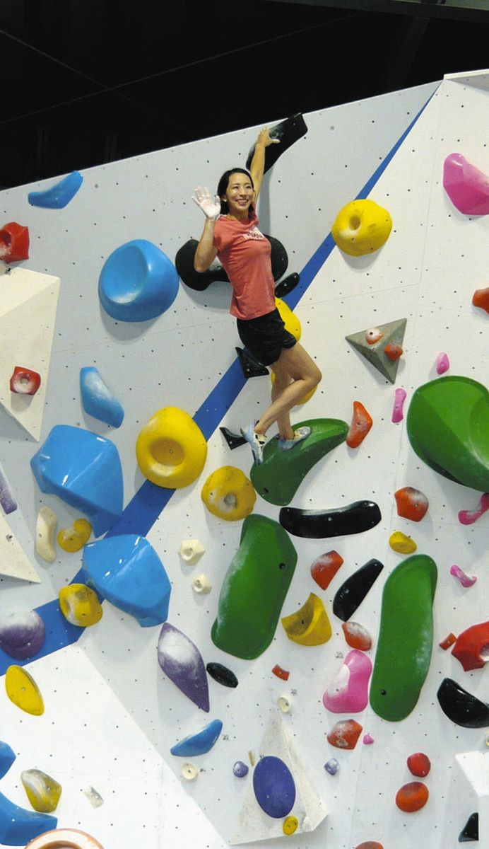 実演したスポーツクライマーの野口啓代さん=江東区で