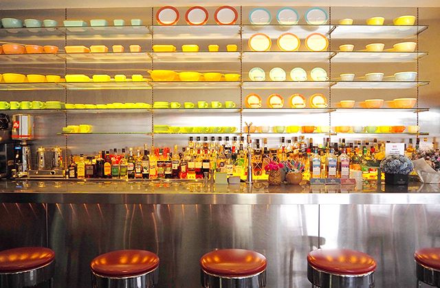 代々木上原駅西口から徒歩約2分、高架沿いに佇むカフェレストラン「ファイヤーキング カフェ」へ。「Fire King」とは、愛らしいフォルムや風合いで、世界中にコレクターがいるアメリカ生まれの耐熱ガラスブランド。実際に店内の料理やスイーツの盛り付けにも食器が使われていて、ファンならずとも魅了されるはずです。