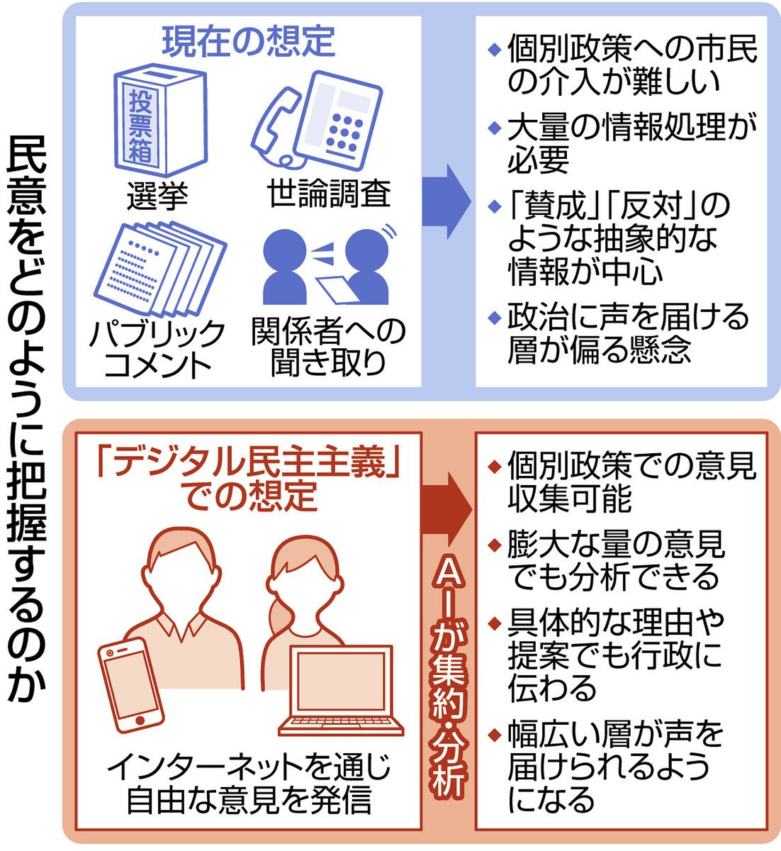「実際の政治に取り入れてデジタル技術で民意を解像度高く反映させる『デジタル民主主義』を実現させたい」。狙いは明確だ。