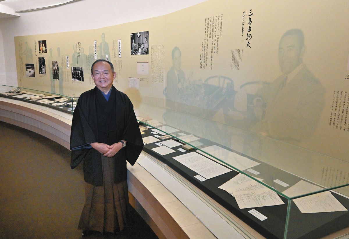 展示品について話すドナルド・キーン記念財団のキーン誠己理事長=いずれも世田谷区の世田谷文学館で
