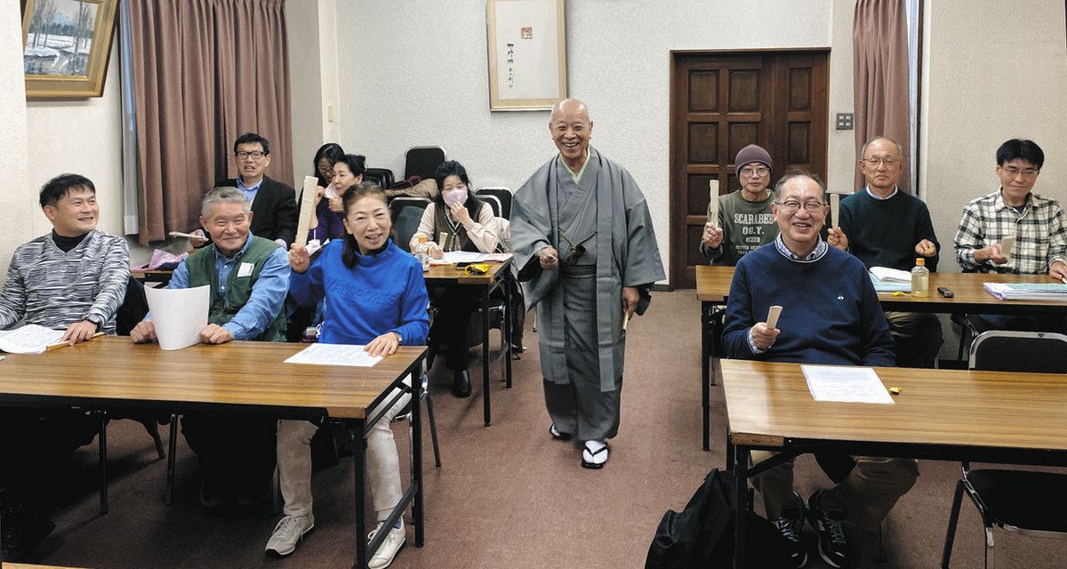 張り扇を振って講談を楽しむ塾生の人たち